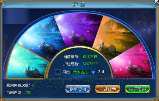1.灵舟品质由低到高分为绿、蓝、紫、橙、红五种,品质越高,奖励经验越多。
