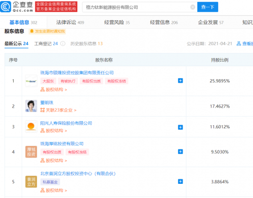 除此之外,11月11日,企查查显示,银隆新能源股份有限公司正式更名为“格力钛新能源股份有限公司”(下称格力钛)。
