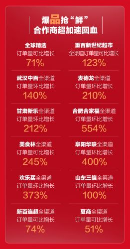 此外,多点Dmall的合作伙伴在此次618中加速回血,重百新世纪超市到店到家全渠道订单量可比增长123%,武汉中百环比增长140%,麦德龙环比增长210%,甘肃新乐环比增长212%,合肥合家福环比增长554%。品牌联盟中多个一线品牌GMV环比普涨200%以上,其中GMV突破百万的单品数量可比增长了140%。