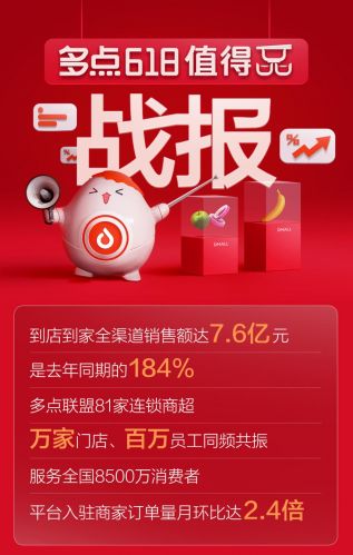 多点Dmall 公布618战报:到店到家全渠道销售额达7.6亿元快报