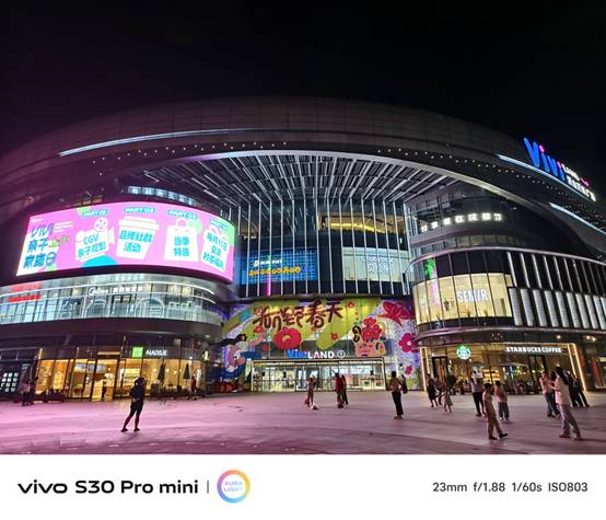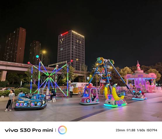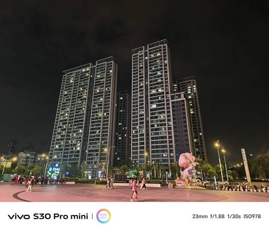夜景拍摄一直是vivo手机的强项,S30 Pro mini更是将这一优势发挥到了极致。在暗光环境下,手机能够通过自研原像引擎和大模型画质增强技术,有效提升画面亮度和清晰度,同时降低噪点。拍摄出的夜景照片整体明亮纯净,不会出现过曝或噪点过多的问题。对于灯光璀璨的城市夜景,S30 Pro mini能够准确还原灯光的色彩和亮度,光晕效果自然,不会产生光污染。而对于暗处的物体,如夜晚的树木、街道上的小饰品等,也能够清晰展现其细节和纹理,让夜景照片富有层次感和故事性,每一个角落都值得细细品味。
