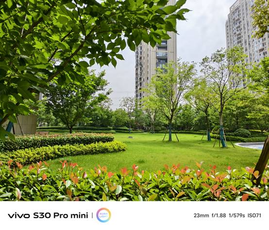 在白天光线充足的环境下,vivo S30 Pro mini的表现令人惊艳。主摄拍摄的照片色彩还原度极高,天空的湛蓝、花草的鲜艳色彩都能准确捕捉并呈现,仿佛将眼前的真实场景原封不动地记录下来。细节方面更是无可挑剔,从远处建筑的纹理到近处树叶的脉络,都清晰可见,经过放大后依然能够保持较好的画质,这得益于其大底传感器带来的丰富光线捕捉能力和高像素优势。超广角镜头拍摄的照片则展现了宏大的场景感,畸变控制出色,边缘处的物体不会出现明显的变形,使得照片更具真实感和视觉冲击力。