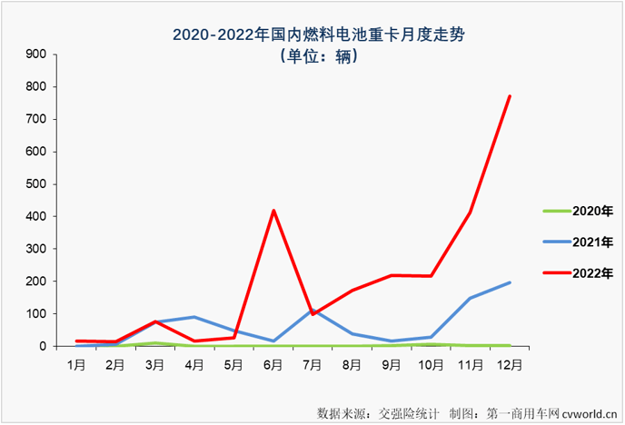 目前氢能重卡在区域物流领域混得风生水起。国内 22 年销量达到了 2456 辆,相比 21 年的 779 辆多了不是一星半点,发展前景相当乐观。