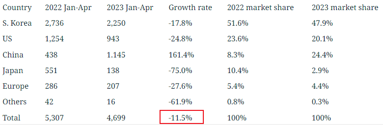 2023 年第一季度全球氢能源汽车萎缩 11.5%