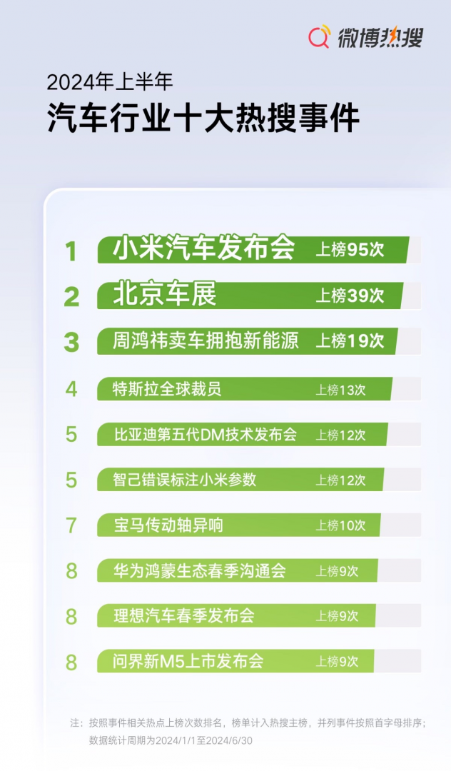 2024上半年汽车行业十大热搜品牌公布:小米遥遥领先快讯