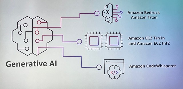 底层,提供用于训练基础模型和在生产中运行这些模型的基础设施,包括自研芯片和AMD、Intel和Nvidia的芯片,以及相关的服务,包括Amazon SageMaker等;