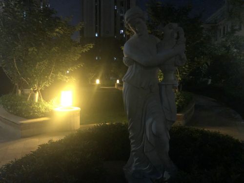 晚上使用华为P30拍摄小区内的景物、分别涉及楼栋、儿童娱乐场、雕像、植物,以及夜晚湖景。华为P30拍摄的所有样张在夜景控噪上表现优异。