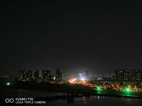 在专业拍摄模式下,华为P30的ISO范围在50至6400,快门速度同样拥有1/4000秒,最慢30秒,还拥有EV,超级夜景下的华为P30,拍摄的湖景照没有明显噪点,晚上的湖水与远处的街灯交相呼应,尽显朦胧美感。