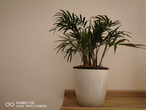 晚上9点在客厅仅打开落地灯情况下,分别使用iPhone XS与华为P30对绿植盆栽进行拍摄。(落地灯余光)