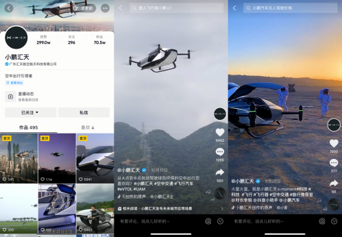 如果你平时刷抖音,没准还能看到小鹏汇天官方账号,隔着屏幕都能感受到那种科幻般魔幻。