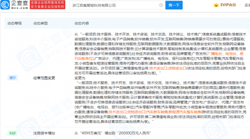 浙江极氪智能科技有限公司注册资本增加至20亿快报