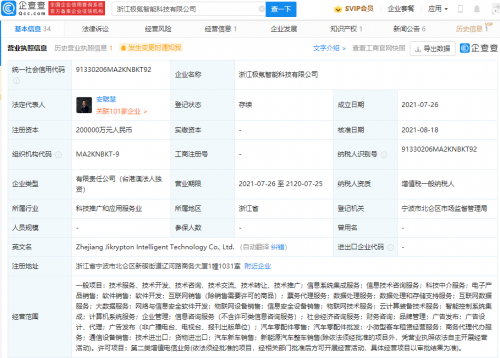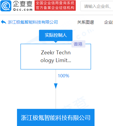 该公司成立于2021年7月,新能源汽车整车销售,由Zeekr Technology Limited全资控股。