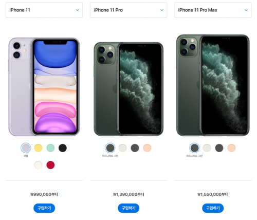 据了解,iPhone 11配备后置双摄像头,而iPhone11 Pro和iPhone11Pro Max均配备三摄像头系统。在韩国市场,价格为990000韩元(约合人民币5969元)到2030000韩元(约合人民币12240元)不等,而根据之前的预约活动以及当地通讯运营商的活动,用户到手价格应该会更低。