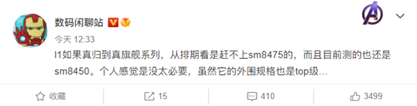据知名数码博主@数码闲聊站 最新发布的信息显示,“l1如果真归到真旗舰系列,从排期看是赶不上sm8475的,而且目前测的也还是sm8450。个人感觉是没太必要,虽然它的外围规格也是top级…”结合此前的相关爆料,该博主口中的“l1”代指的就是小米12 Ultra机型,如果该机赶不上台积电的4nm骁龙8 Gen1旗舰芯片,也将很可能被归到MIX 5系列,并可能会被叫做MIX 5 Pro。