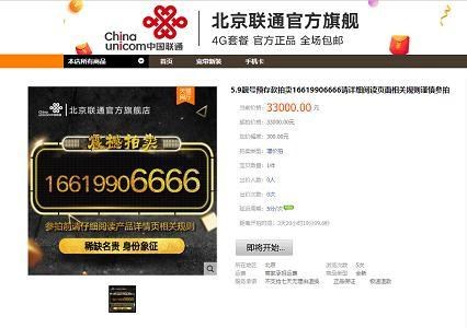 近日,北京联通天猫旗舰店发布广告称,旗舰店将于5月9日正式拍卖14个“166号段”的靓号,起拍价格3000至3.3万元不等。