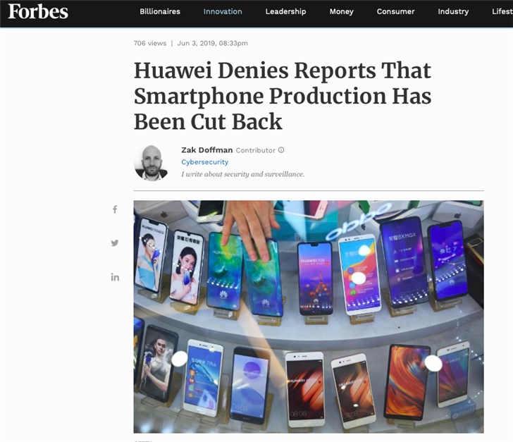 有报道称,供应链消息人士指出,华为正在减少新手机的订单,富士康已经停止了部分华为手机生产线。现在,华为方面对此传闻予以否认。