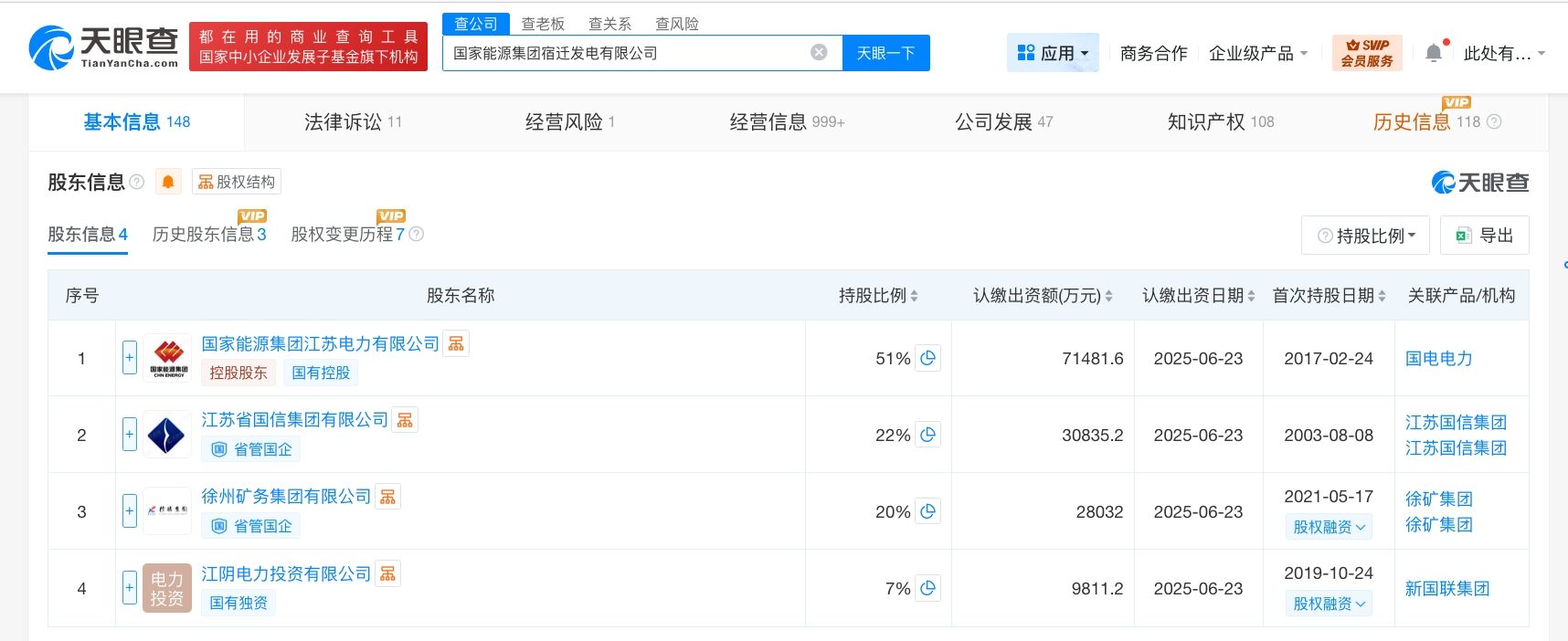 该公司成立于2003年8月,法定代表人为曾剑,经营范围包括电力、热力及相关产品的开发、生产,煤炭销售等。股东信息显示,该公司由国家能源集团江苏电力有限公司、江苏省国信集团有限公司、徐州矿务集团有限公司、江阴电力投资有限公司共同持股。