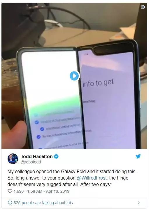 还有一部分的媒体将三星折叠屏上的一层保护膜撕开后彻底损坏了,原因是三星在下面用小字警告用户请勿撕下这块保护膜,只是这些媒体并没有注意。