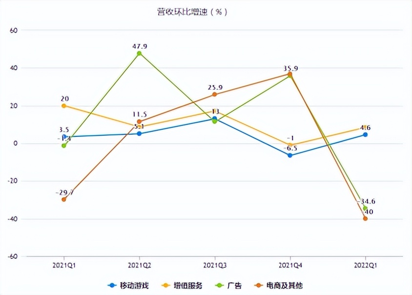 但现在这两大引擎出问题了,而且从环比增速来看,比去年同期表现还要差,这显然是一个不好的信号。即使是横向对比看,B站的广告、电商及其他业务在2022Q1的业绩表现也颇显颓势。