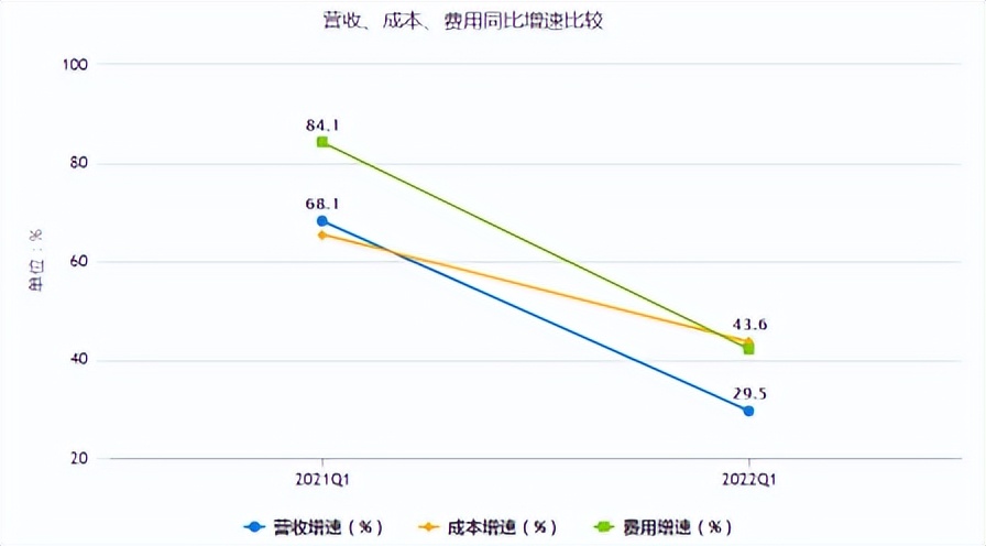 首先看营收与成本、费用的增速情况。2022Q1,B站营收、成本、费用的同比增速分别为29.5%、43.6%、42.1%,成本和费用增速明显高于营收增速,意味着B站实现单位营收所付出的成本和费用更多。