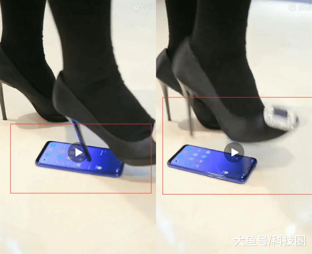红米手机为了新机的宣传,在最近两天进行了两轮的踩踏测试,目的就是为了向用户表达品质十分好,在第一轮的踩踏测试中是用了几个大汉对手机进行各种踩踏测试,第二轮则是用高跟鞋进行踩踏,由于用的是高跟鞋,这次镜头十分的贴近,导致整个手机的屏幕都可以看得非常的清楚,但就是因为看得非常的清除,眼尖的网友发现,这个踩踏测试是有猫腻的。