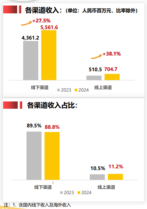 根据披露的数据,卫龙的线上线下渠道比重较为失衡。2024年线下渠道收入同比增长27.5%至55.62亿元,占比高达88.8%,而这已是努力向线上靠近的结果;线上销售收入同比增长38.1%至7.05亿元,尽管增速较快,但收入份额仍较小。