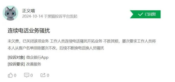 微众银行很快做出回应,称骚扰电话系遭到不法机构冒名。同时表示,只通过官方电话和企业微信联系客户。