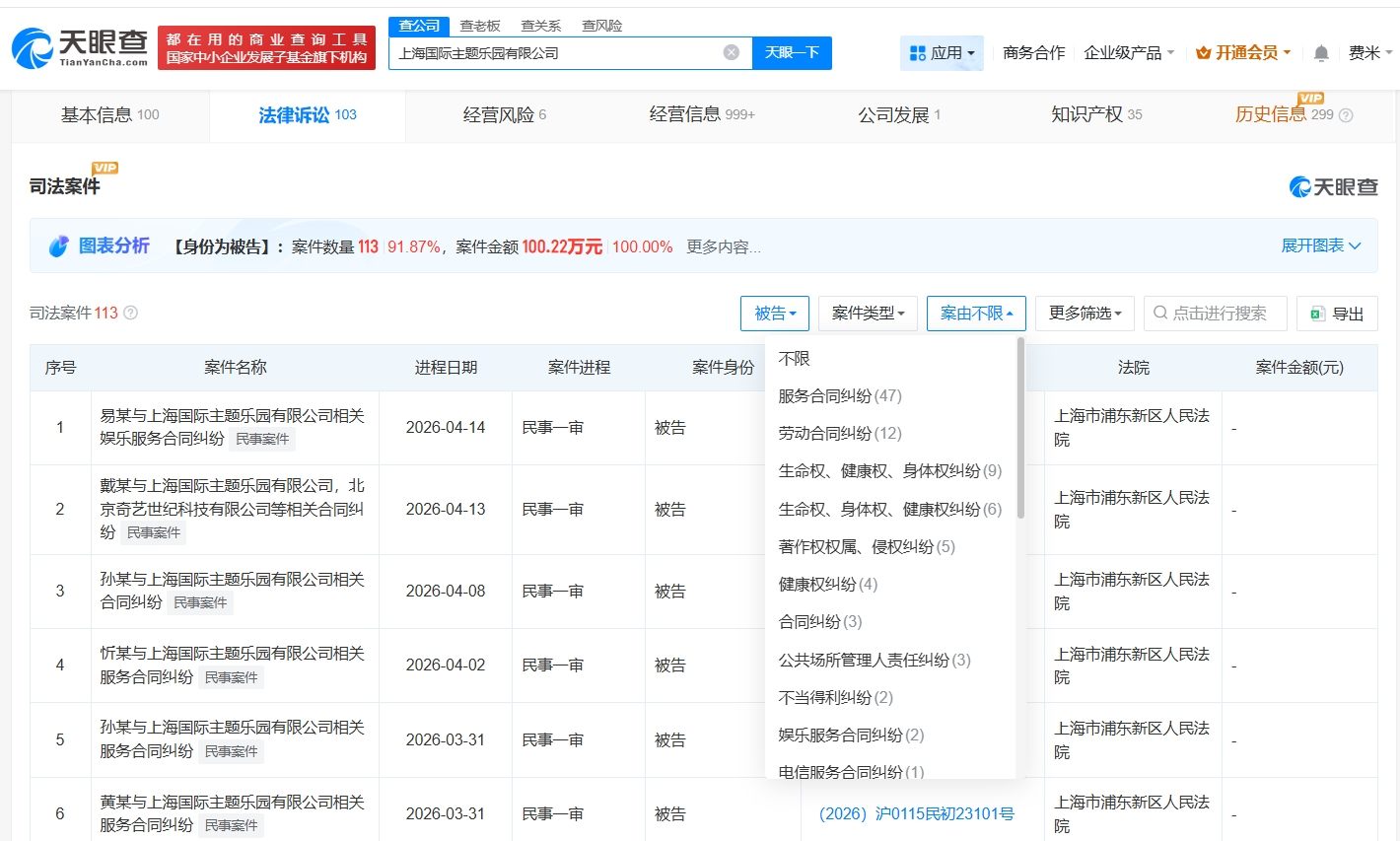 天眼查App显示,上海迪士尼度假区关联公司上海国际主题乐园有限公司成立于2011年4月,法定代表人为管韬萍,注册资本约195.8亿人民币,经营范围包括主题乐园的开发、建设和经营,食品经营,餐饮服务等,由上海申迪旅游度假开发有限公司、WD HOLDINGS(SHANGHAI),LLC共同持股。法律诉讼信息显示,该公司曾因服务合同纠纷、娱乐服务合同纠纷、合同纠纷等被起诉。