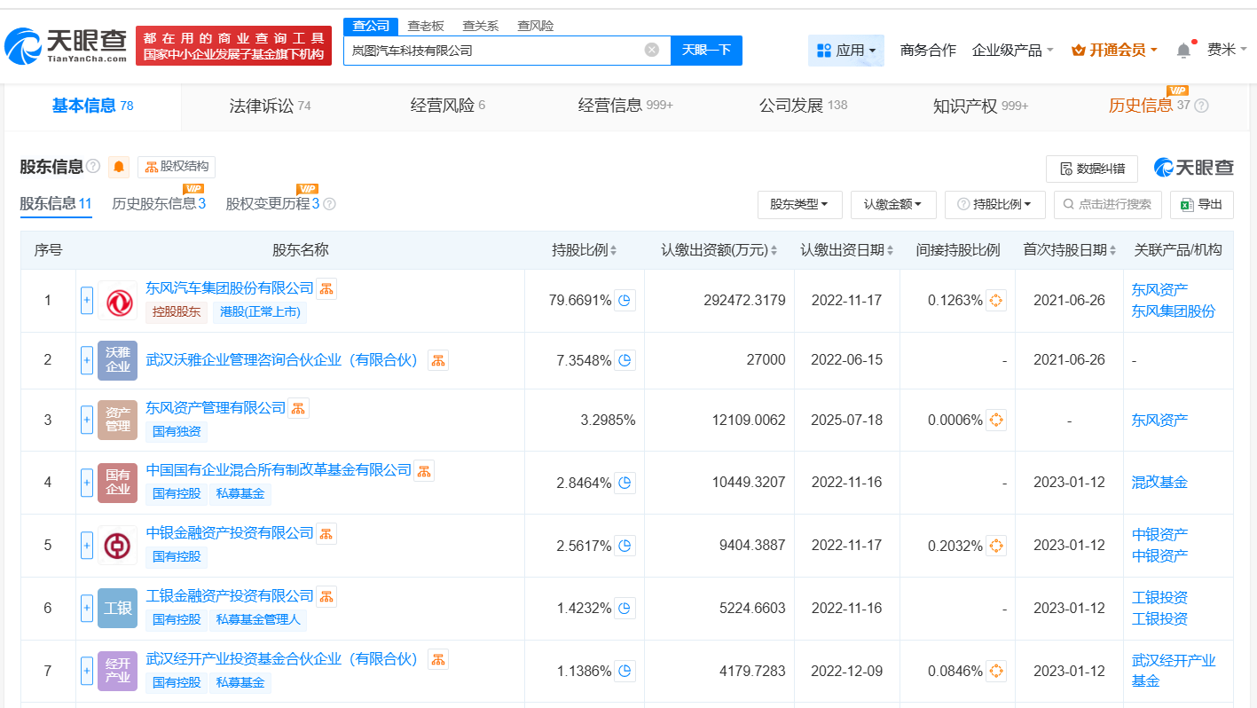 天眼查App显示,近日,岚图汽车科技有限公司发生工商变更,原股东赣锋锂业(002460)、东风交银辕憬汽车产业股权投资基金(武汉)合伙企业(有限合伙)退出,新增东风资产管理有限公司为股东,注册资本由约30.9亿人民币增至约36.7亿人民币,增幅约19%,同时多位高管发生变更。