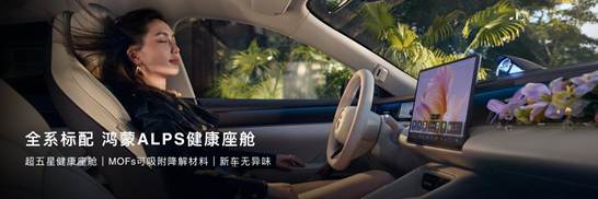 120km/h时速下,增程版舱内噪音仅61.9dBA,纯电版舱内噪音仅60.9dBA。HUAWEI SOUND采用21扬声器音响系统支持7.1.4环绕立体声道,每一秒都美妙。鸿蒙ALPS健康座舱搭载MOFs可吸附降解材料、MOFs滤芯,TVOC净化率超87%,每一程都舒心。