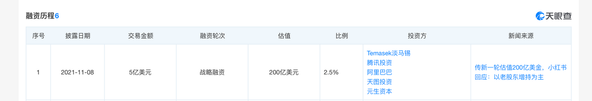天眼查APP显示21年融资之后,估值仅有200亿美金。接下来,如何进一步做大电商业务,推进商业化,可能是小红书近几年的战略目标之一。