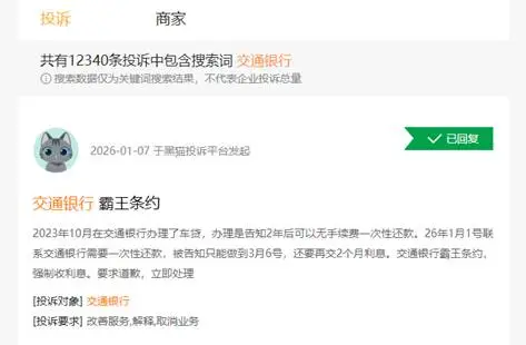 站在消费者角度,催收力度加大避免不了一些像暴力催收、私自扣费、霸王条约等不合理手段的出现。黑猫投诉平台上关于交通银行投诉搜索词共12000多条,其中暴力催收就有上百条。