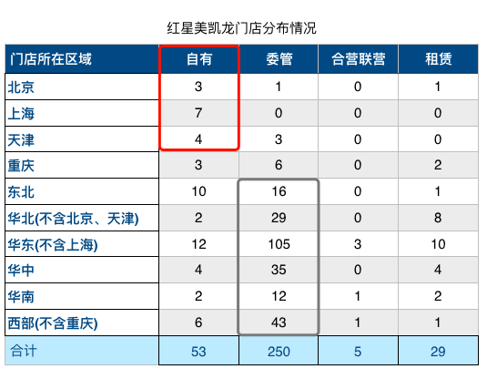 这一点在财报中也得到了体现。全部自营的上海地区、多达105家委管的华东地区合计贡献了超过50%的收入。另外,委管数量较多的西部和华中地区合计收入占比近25%。