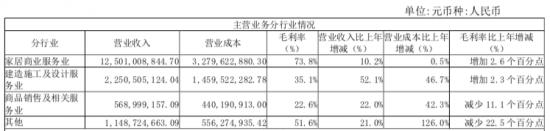 除了排名第一的家居商业服务业,红星美凯龙的建造施工及设计服务业已经悄然跃居第二位,收入同比增加52.1%。