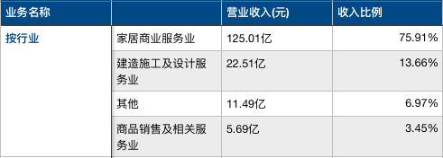 从营收结构来看,家居商业服务业仍然是红星美凯龙的主要收入来源,金额为125.01亿元,同比增长。建造施工及设计服务业收入位居第二,有22.5亿元。