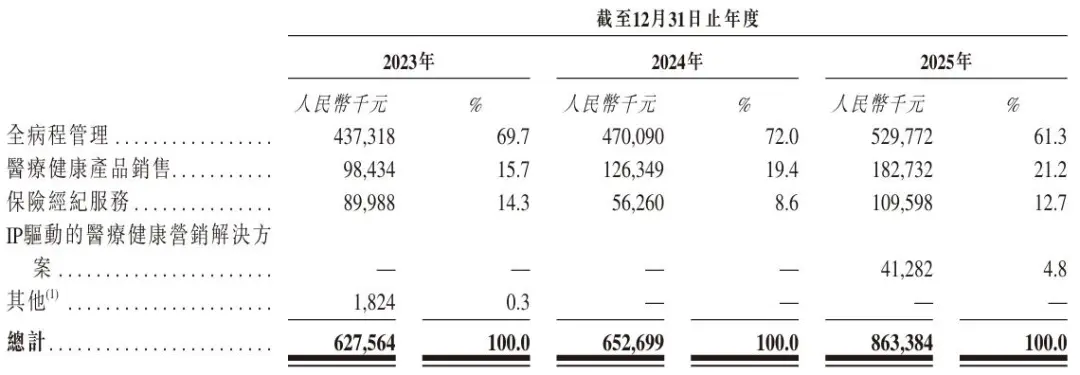 除此之外,微脉还切入了医疗健康产品销售、保险经纪服务、IP驱动的医疗健康营销解决方案等领域。这些延伸业务与核心全病程管理形成协同效应,共同支撑着该公司向综合疾病管理服务提供商的目标迈进。