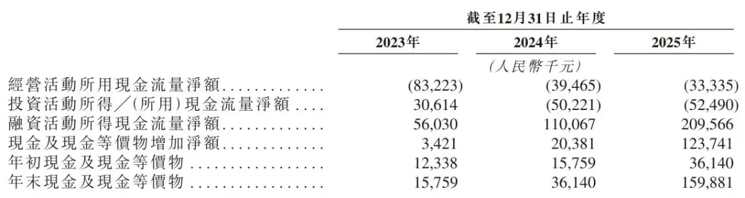 另外,微脉的经营活动现金流持续净流出,分别为-8322.3万元、-3946.5万元和-3333.5万元。尽管截至2025年末在手现金增至1.60亿元,但按当前的“烧钱”速度计算,若无外部融资输血,其现金流安全边际并不宽裕。