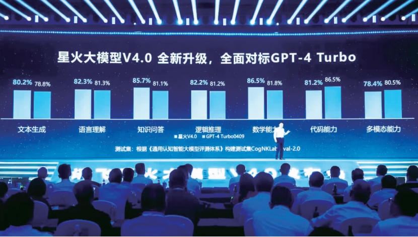 如今怎样?历时一年,科大讯飞在北京发布讯飞星火大模型V4.0及其在医疗、教育、商业等多个领域的落地应用。据了解,该模型基于全国首个国产万卡算力集群“飞星一号”训练,模型能力全面对标GPT-4 Turbo,并在文本生成、语言理解、知识问答、逻辑推理、数学能力等方面实现超越。