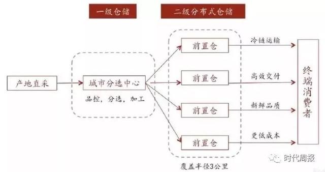 前置仓的本质就是把冷链物流从城市级升级到了社区级,通过前置供应链开设在离消费者最近的地方、辐射周边1至3公里区域的“仓库”。建完之后,用户的体验开始发生变化,下单一小时就能送到,线上买生鲜比在线下更便捷。