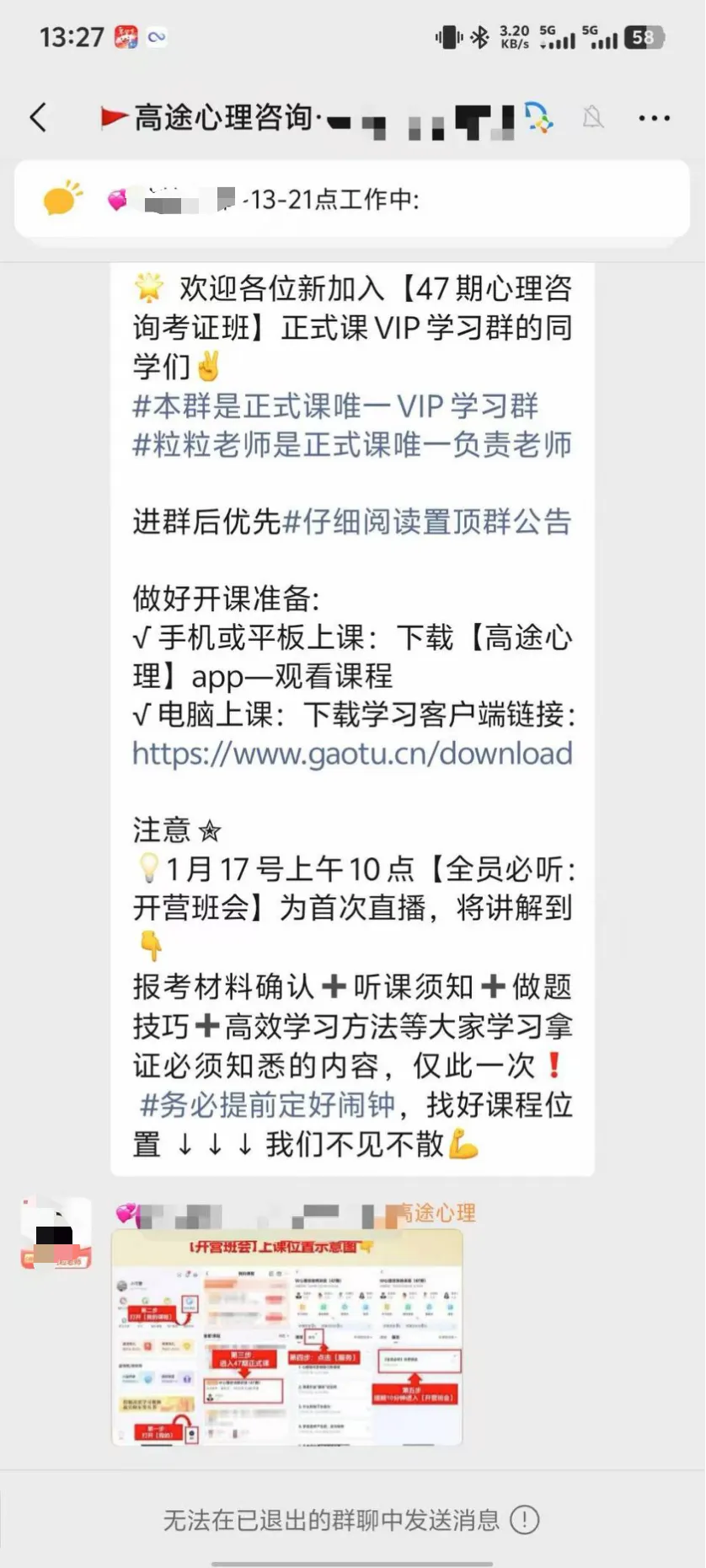 东风说,开课前置课程中,工作人员虽短暂展示过证书,但未重点突出“职工”二字,多数学员都没注意到,直到填报报考信息时才发现异常。“大家都想考不带‘职工’的证书,那种适用范围更广。”学员提出质疑后,课程群被解散,高途解释是“机器人自动解散”,但学员们都不认可,且至今未重新拉群。