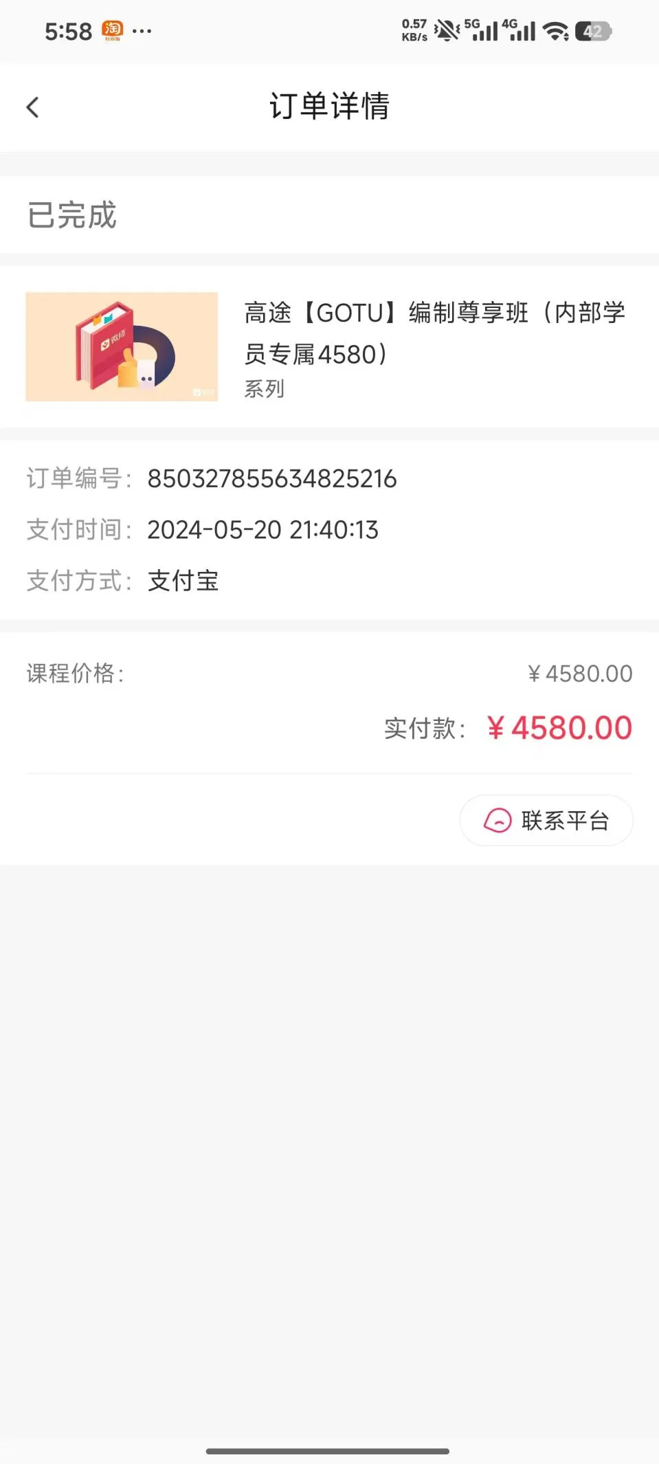 (课程付款截图)
