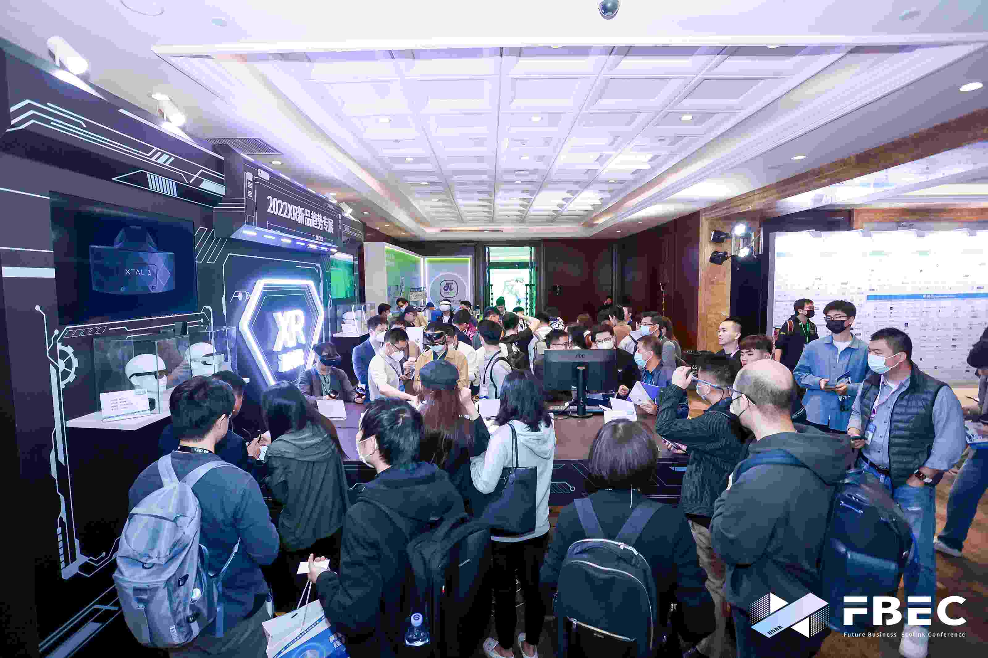 在FBEC四大主题展区中,“XR进化论·XR新品趋势专展”展区,创维 PANCAKE 1、Meta Quest Pro、PICO 4等XR设备新品逐一亮相,参会嘉宾纷纷驻足参展商台前咨询展商业务,近距离感受前沿科技技术,参与创意集章玩法。以及元境、牛信云、武汉政府、普尔瀚达、好游快爆、陀螺活动等带来的精彩内容展出。