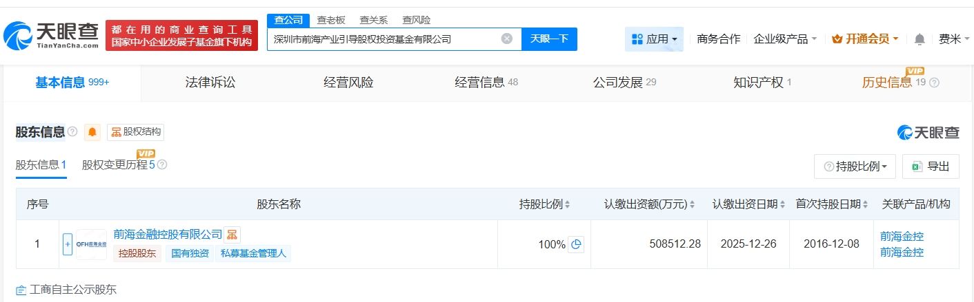 天眼查App显示,近日,深圳市前海产业引导股权投资基金有限公司发生工商变更,注册资本由42亿人民币增至约50.9亿人民币,增幅约21%。