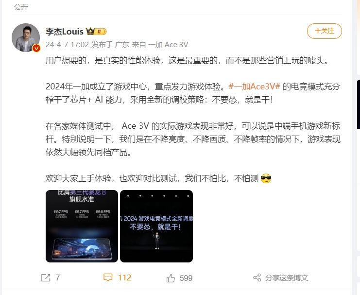 对此一加中国区总裁李杰则发布微博回怼称:“欢迎大家上手体验,我们不怕比,不怕测。”