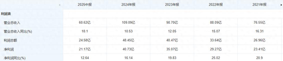 天眼查APP显示,虽然营收利润都是双位数正增长,但已经明显放缓。数据显示,其净利润增速从2022年的25.02%,下降至2025年上半年的13.51%,营业收入增速也一路从2021年的16.31%,下降至10.10%。