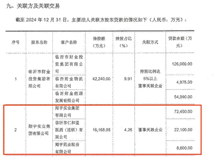 股东层面的风险传导同样值得关注。该行部分主要股东自身股权质押比例极高。财报显示,其第五大股东翔宇实业集团有限公司,所持股份质押比例高达99.99%,却依然从临商银行获得了10.31亿元的贷款。这种对已将银行股权近乎全数质押的股东提供大额融资的行为,不仅挑战审慎经营原则,更意味着股东自身的经营风险可能直接渗透至银行体系,暴露出其在股权管理和风险隔离机制上可能存在漏洞。