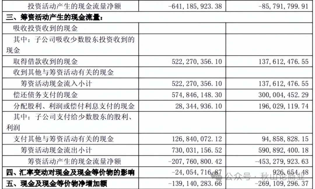从现金流量表的具体数据来看,2025年前三季度,上海家化经营活动产生的现金流量净额为7.34亿元,同比大幅增长172.8%,看似经营现金流表现良好,实则难以掩盖资金消耗的压力。核心原因在于投资活动与筹资活动现金流持续承压,前三季度投资活动现金流净额为-6.41亿元、筹资活动现金流净额为-2.08亿元。三者叠加之下,2025年前三季度公司现金及现金等价物净增额为-1.39亿元,呈现净流出状态,现金储备持续缩水。