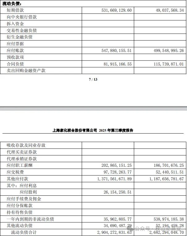 2025年三季报显示,上海家化的货币资金从2024年末的5.5亿元,下降到了2025年9月末的4.11亿元,减少了近1.4亿元。与此同时,上海家化的短期借款大幅增加,从2024年末的4903.76万元,上涨至2025年9月末的5.32亿元,增幅接近10倍。再加上一年内到期的非流动负债3596.28万元,短债总计5.68亿元。现金覆盖率72%左右,无法覆盖短期债务,短期偿债压力巨大。