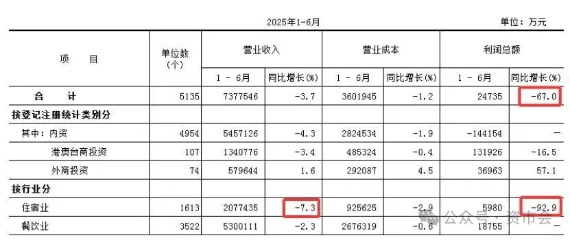 数据显示,北京该领域共有5135家法人单位,实现营业收入737.75亿元,同比下降3.7%;利润总额2.47亿元,同比骤降67%。分行业看,住宿业1613家单位营业收入同比下降7.3%,利润总额仅5980万元,降幅达92.9%。
