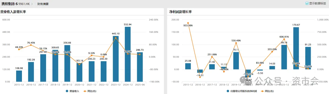 2024年,携程全年营收533亿元,同比增近20%,创上市以来新高;净利润170.67亿元,同比增超72%。